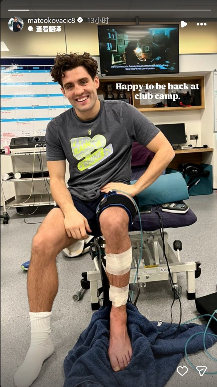 科瓦契奇也曾回到俱乐部,开启新一阶段的康复进度,他在嘱托媒体上晒出新造型,配文:“很清静回到俱乐部西宾营。”