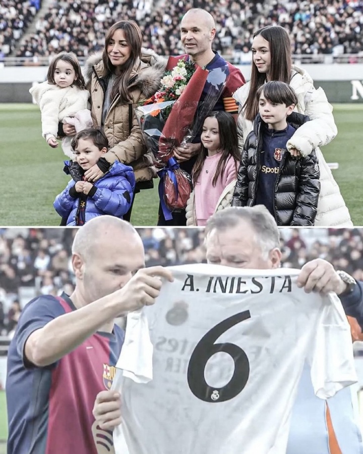 此前在日本的致意赛事,皇马方面向伊涅斯塔施济了印有他名字和6号的球衣,并奉上了鲜花示意敬意。