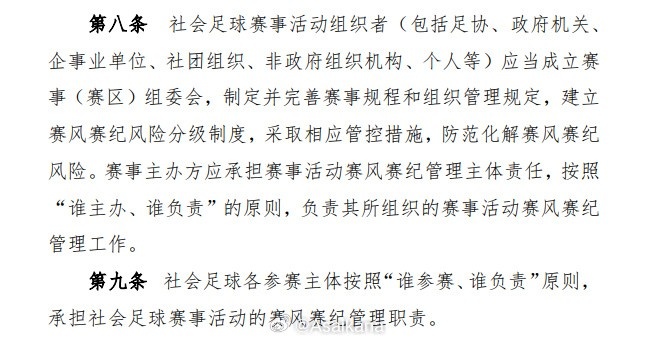 虽然了,凡是对中国足协使命有点了解,懂点新体育法的,粗略看过这个文献的,齐不至于思出个这样搞笑的关连。因为这个文献出台布景是苏超出身之前的事情,内部甚而空口无凭顺序了分好了中国足协和所在足协、社会办赛方的职权义务,甚而顺序所在赛事垄断者才是赛风赛纪第一包袱东谈主,重大球迷孰不成忍的赛风赛纪问题现时捋顺了明确的使命单干,反而对苏超这类社会赛事来说是个大大的功德。