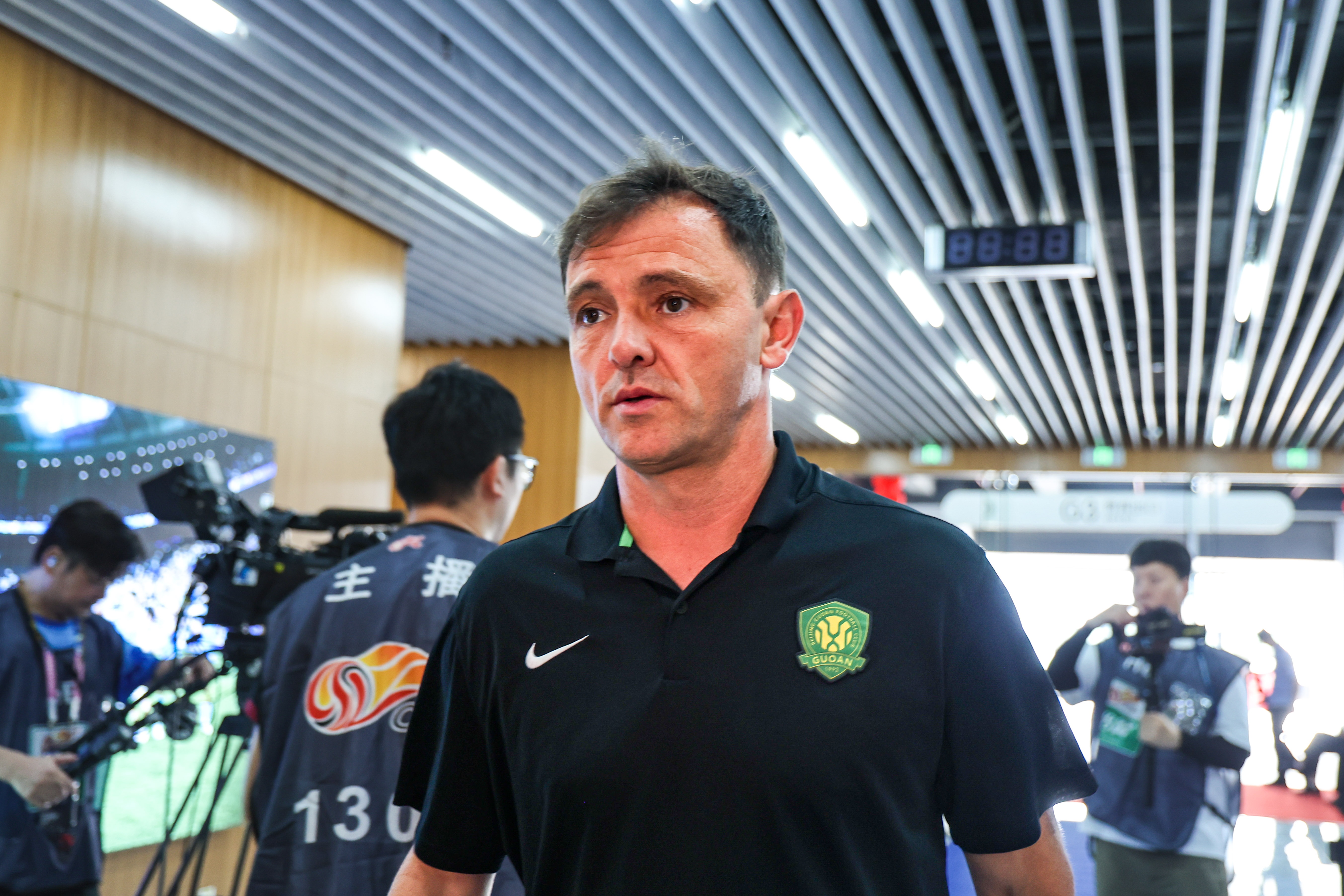 10月25日讯 中超联赛第28轮,北京国安将在主场对阵青岛海牛。据“天天体育”报谈,国安代理主帅拉米罗携球员李磊出席了赛前新闻发布会。