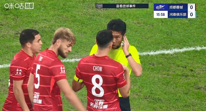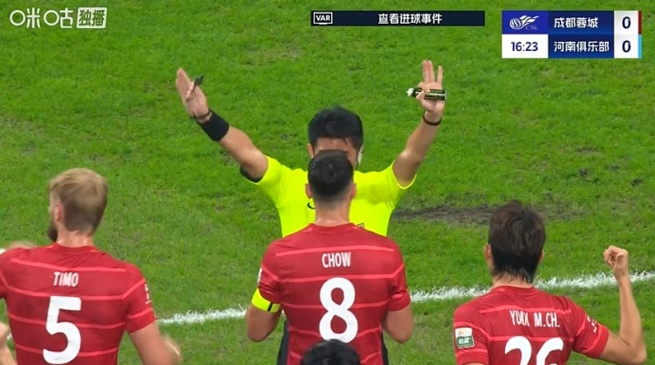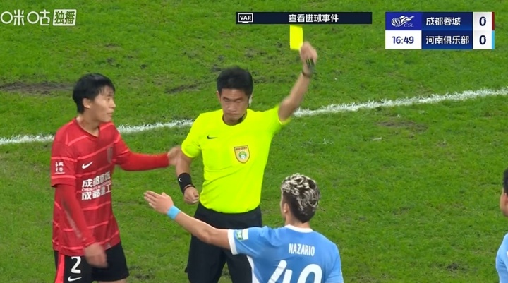胡荷韬破门,但裁判认定河南队手球在先进球无效,判给蓉城定位球。随后蓉城教师组抗议吃到黄牌。