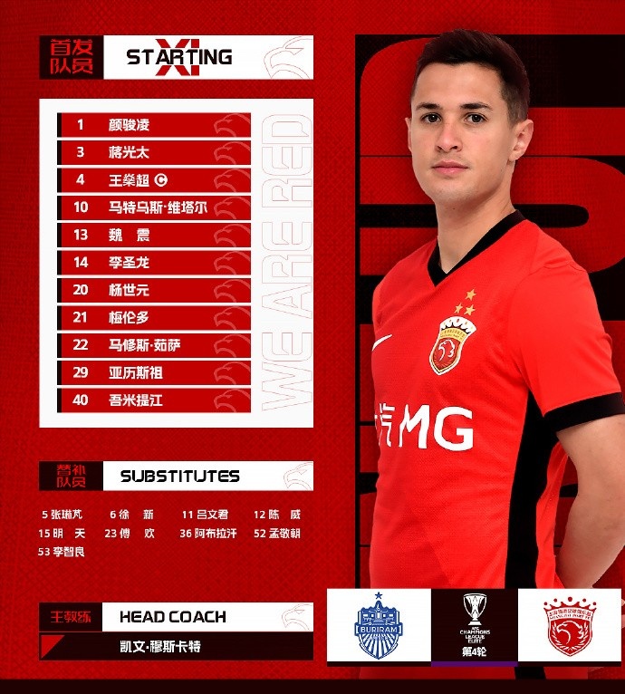 > 2025/2026亚冠精英联赛第4轮 武里南联vs上海海港 本日首发名单