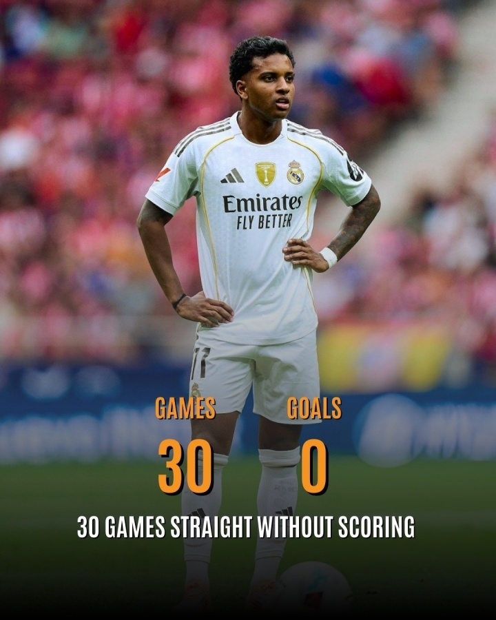 罗德里戈在皇马际遇通顺30场的进球荒,追平了皇马123年队史上最长的前卫不进球场次记载,此前马里亚诺曾经通顺30场比赛莫得进球。