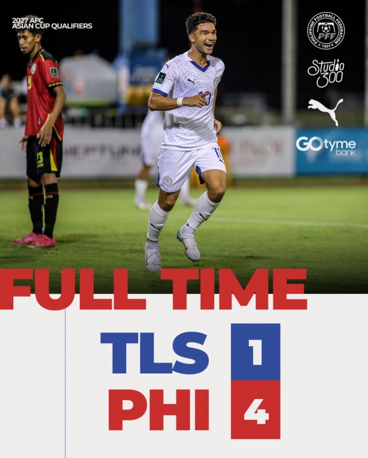 10月09日讯 在刚刚猖狂的一场亚洲杯预选赛中,菲律宾4-1完胜东帝汶,暂列小组第1。