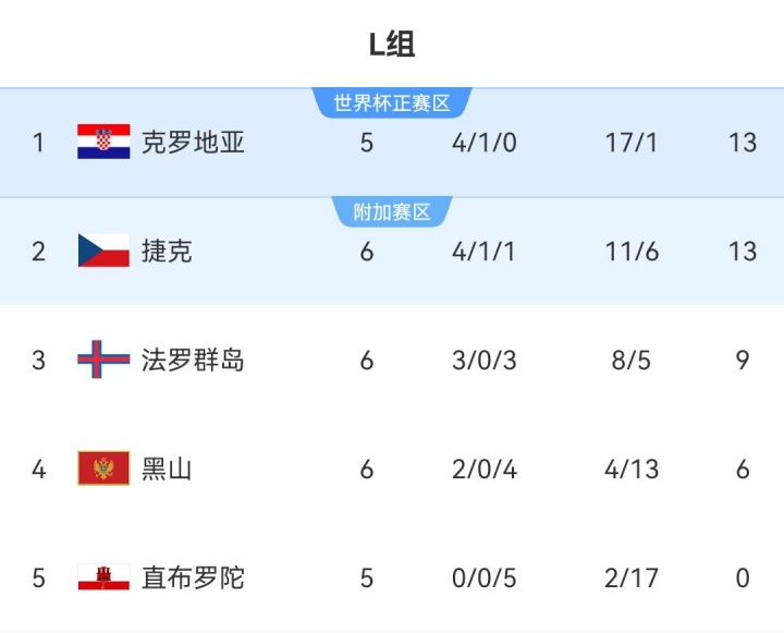 在现在的积分榜上,法罗群岛3胜3负名次小组第3,其中两场获胜是在直布罗陀身上得回的。临了两轮比赛他们将对阵小组前二克罗地亚和捷克,在首回合对阵这两支球队时,法罗群岛也仅仅1球落败。固然确切不行能活着界杯上看到这个北欧群岛的身影,但也曾不错期待他们能否带来更多惊喜。