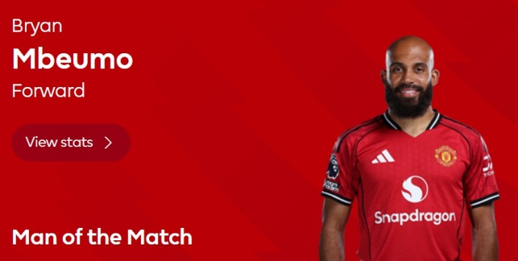 本场比赛曼联新援姆伯莫获利我方在曼联生活英超首球,赛后他也当选英超官方球迷票选全场最好球员。