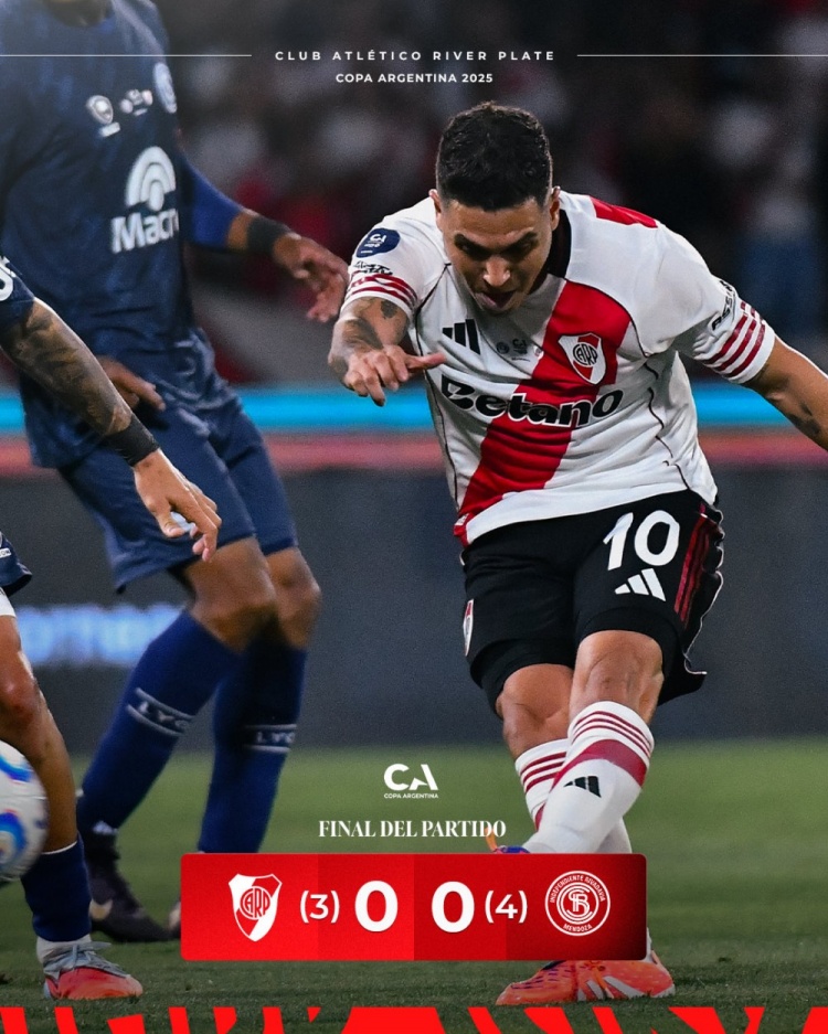 10月25日讯 今天进行的阿根廷杯半决赛,河床通例时候0-0战平门多萨落寞,最终河床点球大战3-4落败无缘决赛。门多萨落寞队史初度晋级阿根廷杯决赛,将对阵阿根廷后生东谈主。