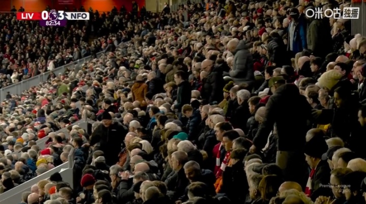 > 安菲尔德之痛!3球逾期无力回天,赤军球迷80分钟后纷纷运转离场