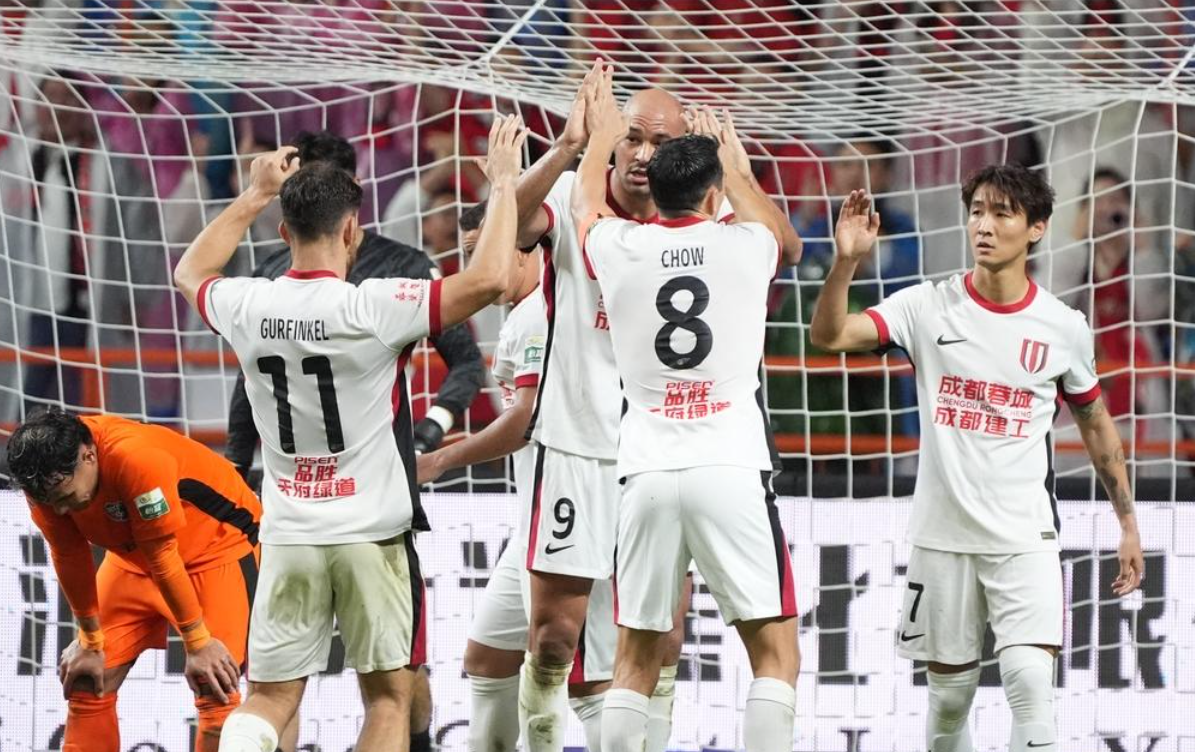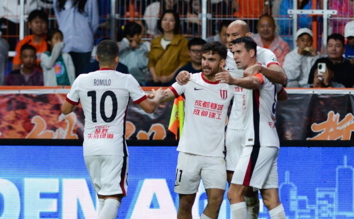 比赛刚运行不久,成齐蓉城就获取契机。罗慕洛在禁区外尝试一脚远射,效能踢高了。第12分钟,成齐蓉城进球了!韦世豪在禁区左侧内切兜射远角,皮球击中立柱弹出,周定洋跟上面球补射自便把球送进佛门。成齐蓉城获取梦境般的开局。8分钟后,奥斯卡近距离抢点射门,踢偏了。